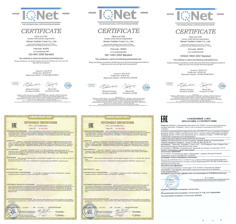 GB / T 24001-2004 idt ISO 14001: 2004, GB / T 28001-2001, OHSAS 18001: GB / T 19001-2000 idtni ISO 9001: 2000, 1999, Idoralar, GOST, SGS, TUV, BV va boshqalar. Hindiston, Bangladesh, Iroq, Pokiston, Filippin, AQSh, Misr, Peru, Hindiston, Turkmaniston, Singapur, Efiopiya, Janubiy Afrika, Saudiya Arabistoni, Malta, Albaniya, Ukraina, Vyetnam, Keniya, Nigeriya, BAA, Ruminiya, Malayziya, Armaniston, Iordaniya, Rossiya, Svazilend, Qatar, Braziliya, Iordaniya, Kolumbiya, Kamerun, Shri-Lanka, Bruney, Indoneziya va shu kabilar, 100 dan ziyod davlatlar tomonidan tasdiqlangan va ulardan mamnuniyat bilan kutib olindi va kran eksporti bo'yicha ko'proq ekspertlar mavjud. biz doimo "bizning kreditimiz qanchalik yuqori bo'lsa, bizning kompaniyamiz bundan kuchliroq bo'ladi" deb e'tirof etamiz. Va har bir mijozga samimiy munosabatda bo'ling. Siz bilan butun dunyo bo'ylab do'st bo'lishga juda xursand bo'lamiz va "tezkor, ishonchli va yuqori sifatli" xizmat bilan uzoq muddatli yaxshi hamkorlikni o'rnatishga umid qilamiz!